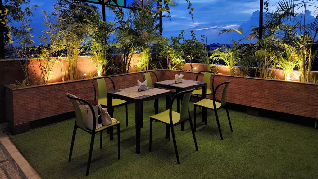 Sundaram has a special rooftop area for dining. You can eat your food while enjoying a great view from up there. It’s a lovely place for a nice meal with your loved ones or friends.